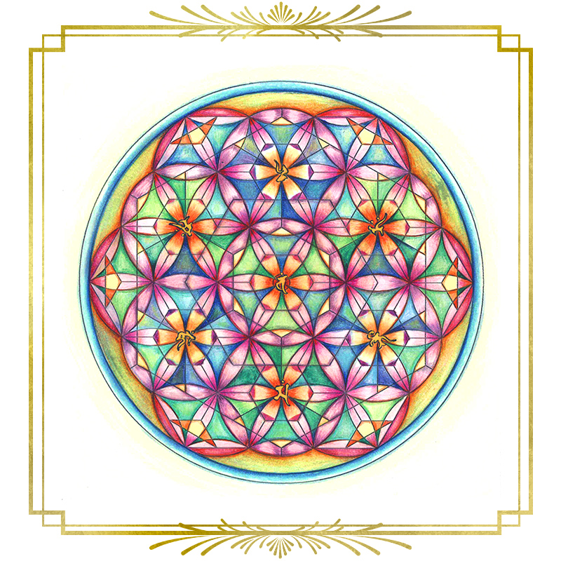 コメント:とても楽しくて、夢中になって塗りました。ダイヤのクスリエを最初に見た時に、一つ一つの図形がきれいなお花のように見えたので、私の大好きな花と、花に関する自然界の色を意識しながら制作しました。