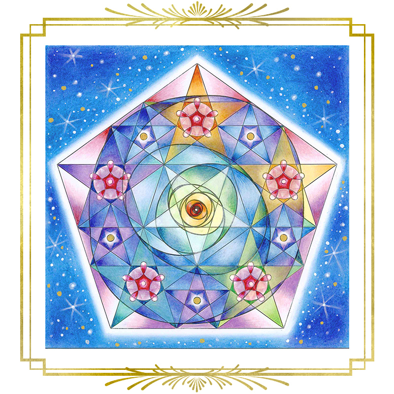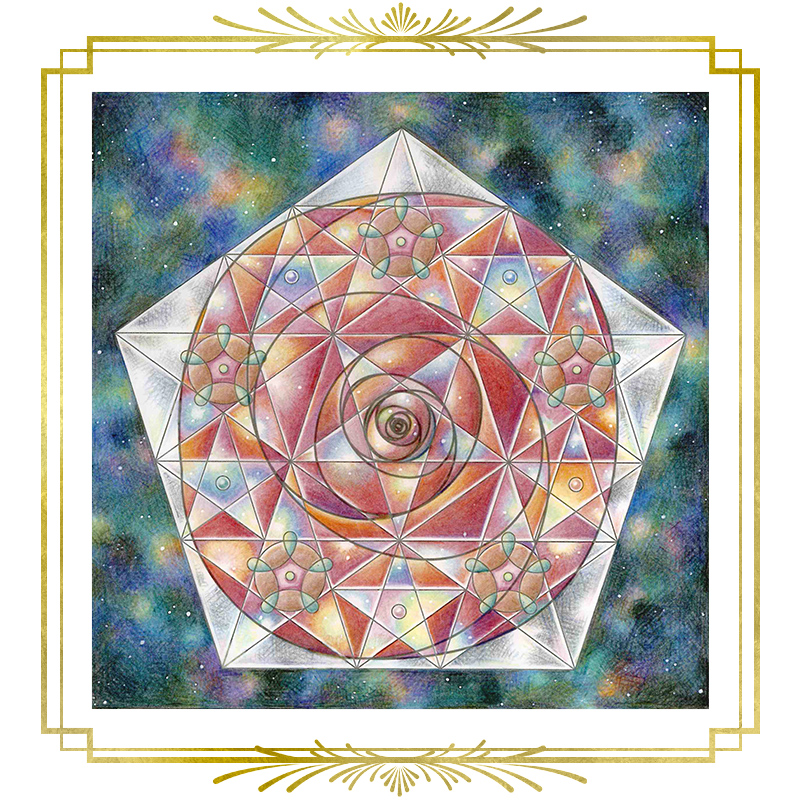 線画を拝見したとき「薔薇を内包した結晶が宇宙を漂っている」様に見えたので、その様を着彩させていただきました。 大まかな色合いだけで決めて、後は直感的に手が選んだ色を塗り進めて行きました。 楽しかったです。ありがとうございました!!